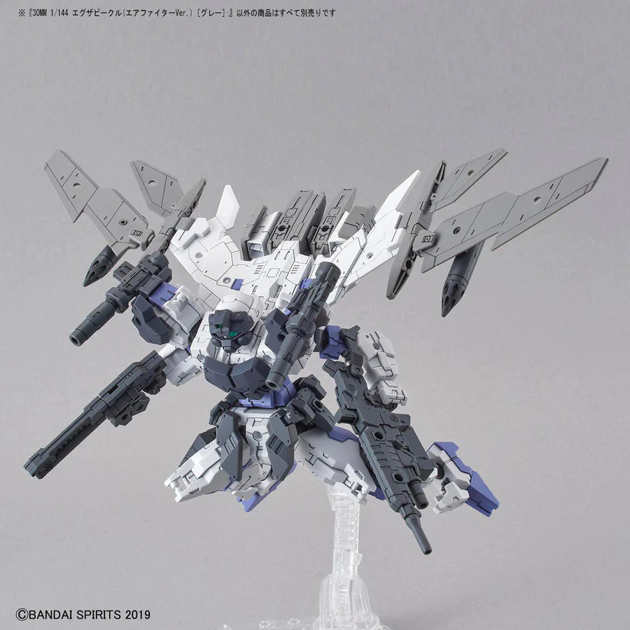 The Extended Armament Vehicle, also known as EXA, model kit series duals as an accessory and a stand alone series of various armed vehicles—all of which can be combined with 30MM models! The EXA air fighter version in gray comes with flight pack parts.