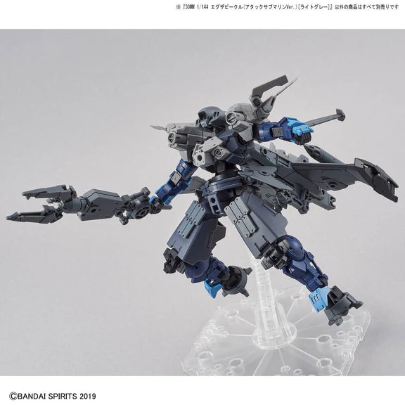 The 30 Minutes Missions EXA, or Extended Armament, continues with the Attack Submarine. By changing the parts, it can be transformed into 3 types: ray type, saw shark type, and hammerhead shark type. It can also be used as a backpack for 30MM mecha or other similar sized model kits.
