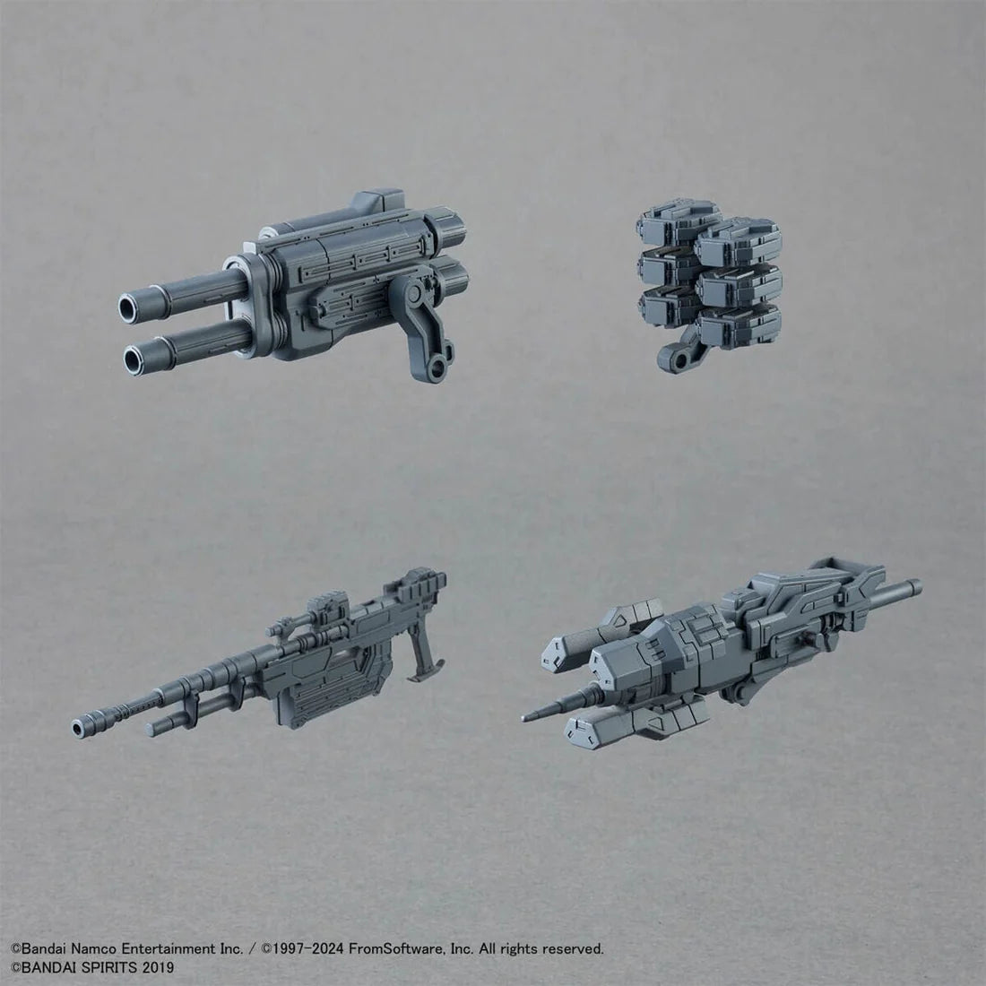 The head, core, arms, and legs each use a common structure for the series and you can enjoy assembling as a plastic model, as seen based on the original source material. A 3mm joint is used for attaching both shoulder weapons and some left-handed weapons, which can be used for various displays.