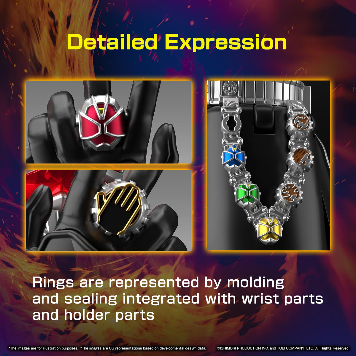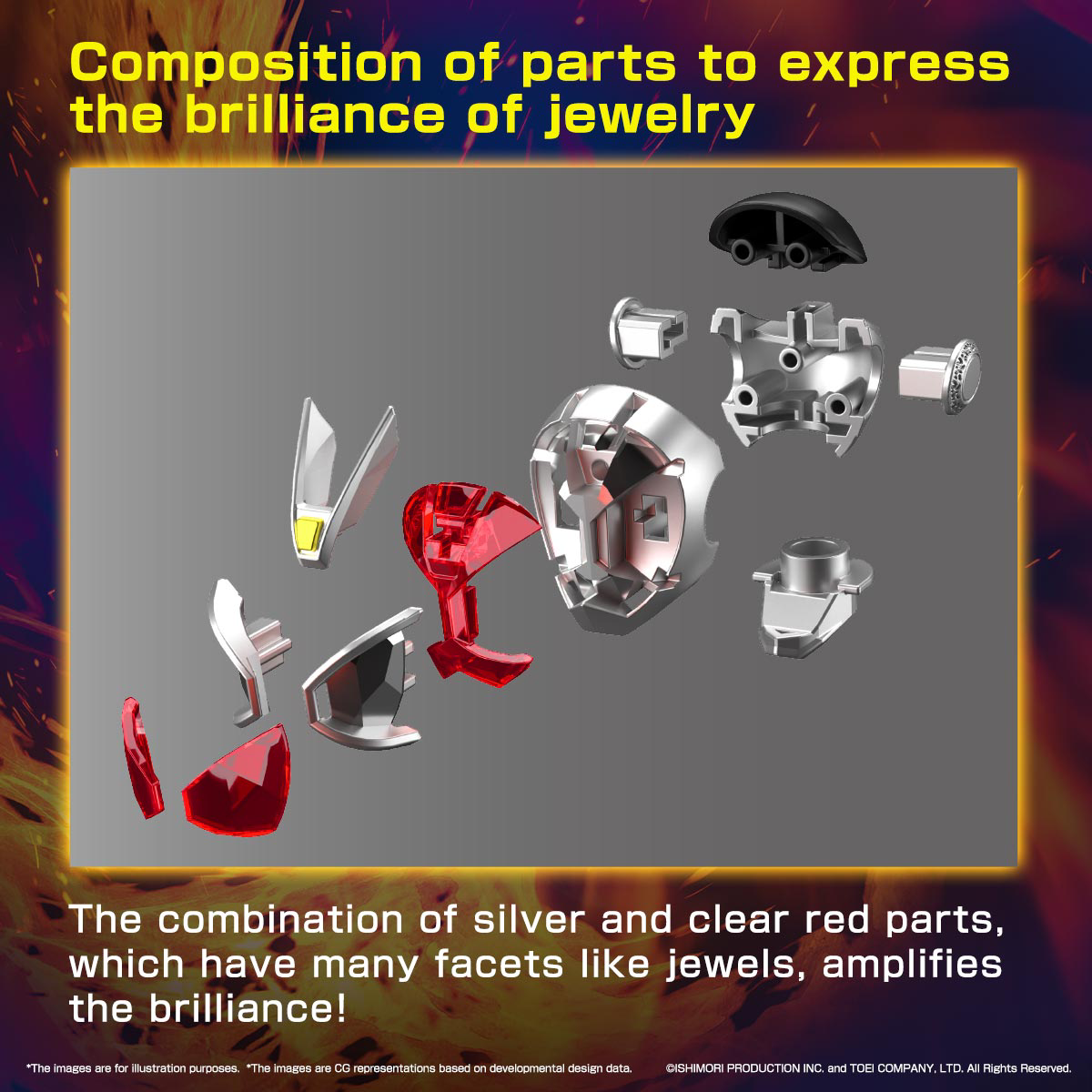 The parts of the head and torso are composed of parts that express the brilliance of the jewel with extra finish processing and clear parts! Two types of lobe shapes, "vertical" and "nabiki", are attached, and four ways of expression are possible by combining parts. You can create a production that matches the pose. The WizarSwordGun can be expressed by replacing "Sword Mode" and "Gun Mode" with a hand author. The ring is reproduced by integrated molding and seal with wrist parts and holder parts.