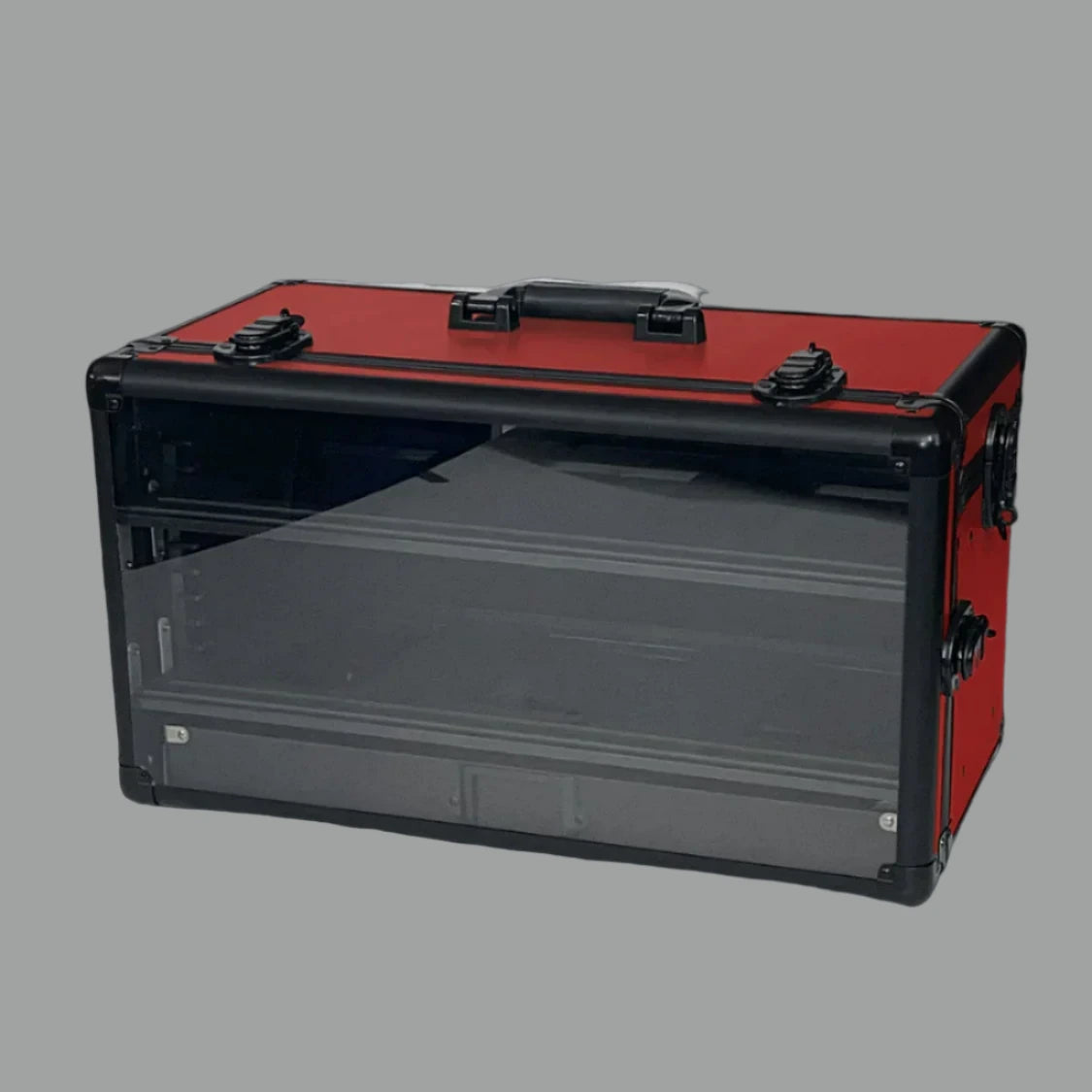 This product is designed to work best with our Display Boards (2 included; more may be purchased separately) and Unit Trays. The front of the case has an acrylic face to allow visibility into the contents of the case while the case is closed. The acrylic face is removable for easy access to the case when opened. The top lid of the case also opens to provide even greater access to the contents when the case is opened. The drawer of the case may be removed to allow greater customization and arrangements of the contents.