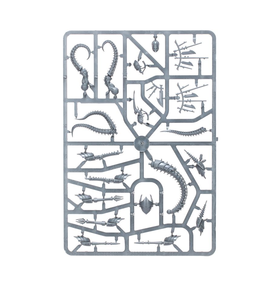 The Talos has a choice of four heads and can be armed with a stinger pod, twin haywire blaster, twin heat lance, or twin splinter cannon. One of its macro-scalpels can be replaced with a twin liquifier gun, one set of chain flails, a Talos gauntlet, or a Talos ichor injector.